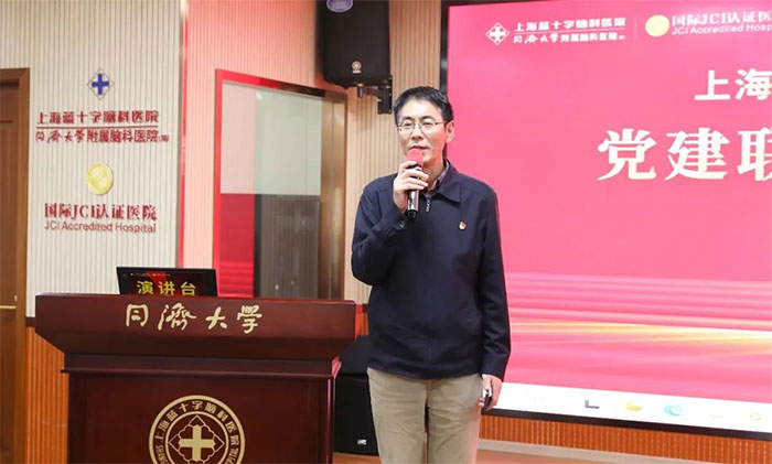 復(fù)旦大學(xué)附屬第五人民醫(yī)院黨委副書記、紀(jì)委書記宋琪是第三次來(lái)藍(lán)十字參訪,他表示,此次上海市第五人民醫(yī)院和上海藍(lán)十字腦科醫(yī)院開展黨建“聯(lián)建共建”是新形勢(shì)下不斷深入學(xué)習(xí)貫徹習(xí)近平新時(shí)代中國(guó)特色社會(huì)主義思想的有效途徑,也是以黨建為引領(lǐng)、促使雙方黨建工作更加深入融合的具體舉措。共建是教學(xué)相長(zhǎng),五院將本著“業(yè)務(wù)幫帶促發(fā)展”的目標(biāo),助力推進(jìn)藍(lán)十字醫(yī)院在高質(zhì)量發(fā)展的道路上取得新成效、新進(jìn)展。最后,宋琪書記即興賦詩(shī)一首——“黨建引領(lǐng)醫(yī)聯(lián)體,公立民辦手牽手。初心使命共擔(dān)肩,救死扶傷莫等閑”,表達(dá)了對(duì)雙方聯(lián)建共建的美好祝愿!