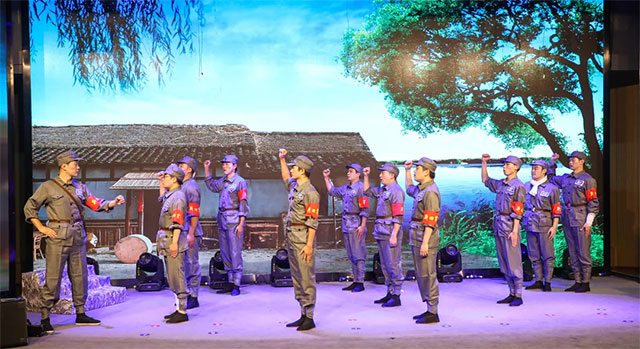 現(xiàn)代京劇《要學(xué)那泰山頂上一青松》再現(xiàn)了新四軍戰(zhàn)士在蘆葦蕩中與日寇頑強(qiáng)周旋的場(chǎng)景,將革命者的青松氣質(zhì)和藍(lán)生腦科人的堅(jiān)忍品格表現(xiàn)得淋漓盡致。