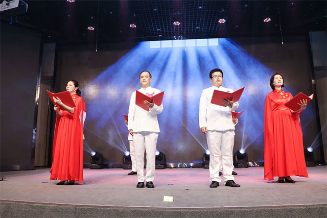 伴隨悠揚(yáng)的伴奏,朗誦《中國(guó),選擇了七月》踏著火熱的韻律, 踩著殷紅的樂符,引領(lǐng)大家走進(jìn)流金溢火的七月,把目光投向出發(fā)的地方,把腳步邁向充滿希望的未來。