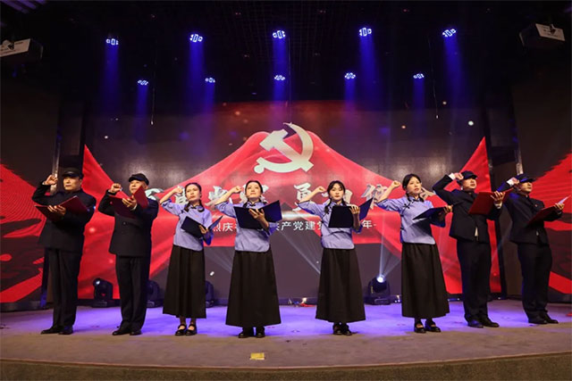 《國(guó)歌》奏唱完畢,面對(duì)鮮紅的黨旗,全體與會(huì)黨員在卓立強(qiáng)同志領(lǐng)誓下,重溫入黨誓詞。“我志愿加入中國(guó)共產(chǎn)黨,擁護(hù)黨的綱領(lǐng)……”鏗鏘有力的宣誓響徹會(huì)議廳,是初心使命的再宣誓,是忠誠(chéng)信仰的再宣誓,是接續(xù)奮斗的再出發(fā)。