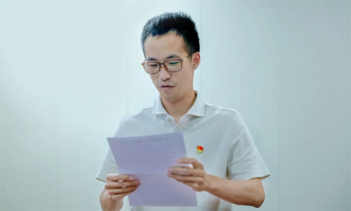 ▲ 曹雨楓同志宣讀轉(zhuǎn)正申請(qǐng)