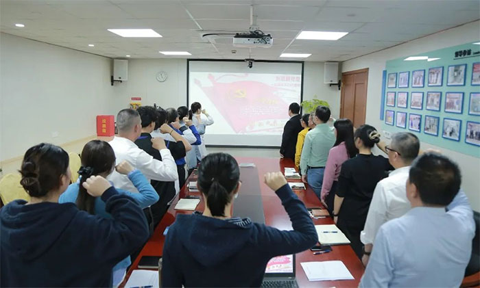 會議最后,在朱敏書記的帶領下,全體黨員高舉右拳,重溫入黨誓詞。鏗鏘的誓言,豪壯的激情,在黨旗下匯聚成河,奔流在每一個黨員的心田。堅持兩個“維護”,不忘初心,牢記使命,在黨的領導下,踔厲奮發(fā),砥礪前行。