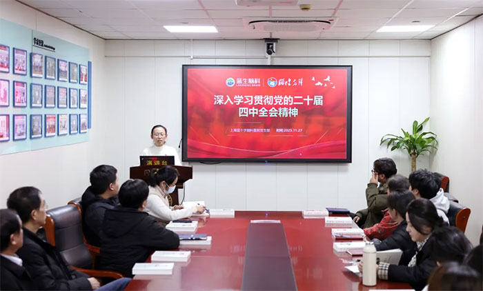 思想是行動(dòng)的先導(dǎo),理論是實(shí)踐的指南。專題黨課后,會(huì)議旋即進(jìn)入第二項(xiàng)議程——深入學(xué)習(xí)貫徹黨的二十屆四中全會(huì)精神。趙宇蘭副書記帶領(lǐng)與會(huì)黨員共同研讀全會(huì)公報(bào)及相關(guān)權(quán)威解讀文件,聚焦“人民健康是社會(huì)主義現(xiàn)代化的重要標(biāo)志”戰(zhàn)略內(nèi)涵,深刻領(lǐng)會(huì)全會(huì)提出的新思想、新戰(zhàn)略、新部署。