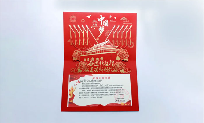 過“政治生日”是對初心使命的重溫。正如賀卡扉頁上赫然寫著的“共筑中國夢——奮進新征程,建功新時代”,及禮盒上的“復興”兩字,雖然只有短短十七個字,但卻讓人熱血沸騰。上海藍十字腦科醫(yī)院黨支部將不斷提高政治站位,充分發(fā)揮戰(zhàn)斗堡壘作用,在習近平新時代中國特色社會主義思想和黨的二十大精神的指引下,積極擔負起提升民生健康的使命,為提升人民健康水平助力,為建設健康中國助力,相信實現“兩個一百年”奮斗目標、實現中華民族偉大復興的中國夢必將早日實現!