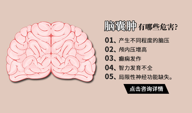 腦囊腫危害我們可從疾病的癥狀和體征說起。一些腦囊腫終身無癥狀,囊腫進行性增大,壓迫周圍神經(jīng)結(jié)構(gòu)或阻礙正常腦脊液循環(huán)通路,可出現(xiàn)下列癥狀和體征:頭圍增大、局限性顱骨膨隆、顱內(nèi)壓增高癥狀、癲癇發(fā)作、智力發(fā)育不全、局限性神經(jīng)功能缺失。不同部位的囊腫有不同的癥狀,如鞍區(qū)囊腫往往有視力視野改變或出現(xiàn)內(nèi)分泌癥狀。