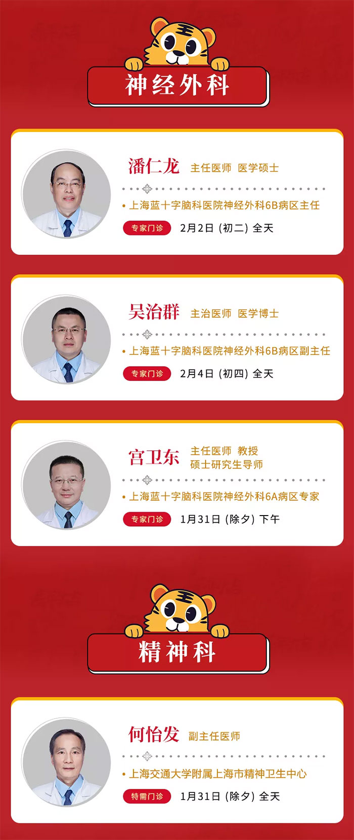 1月31日-2月6日,醫(yī)院門、急診照常開放,以方便市民朋友們尋醫(yī)問診,具體詳示如下: