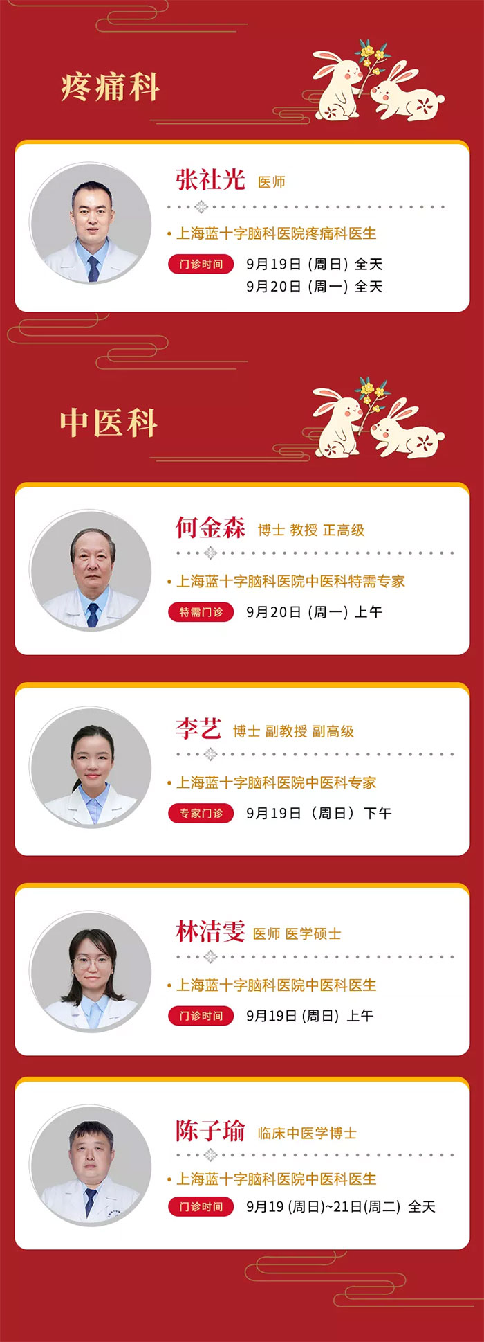 溫馨提示:進(jìn)入醫(yī)院需出示隨申碼、行程碼、測(cè)量體溫、配合醫(yī)院做好流調(diào),全程佩戴口罩。新住院患者及陪護(hù)需出示3日內(nèi)核酸檢測(cè)陰性報(bào)告辦理住院。因假期就診人數(shù)較多,建議您關(guān)注上海藍(lán)十字腦科醫(yī)院微信公眾號(hào)或撥打預(yù)約電話(021-64879999)提前預(yù)約,以減少您的排隊(duì)等候時(shí)間。預(yù)祝大家中秋節(jié)快樂(lè),萬(wàn)事如意,闔家安康!