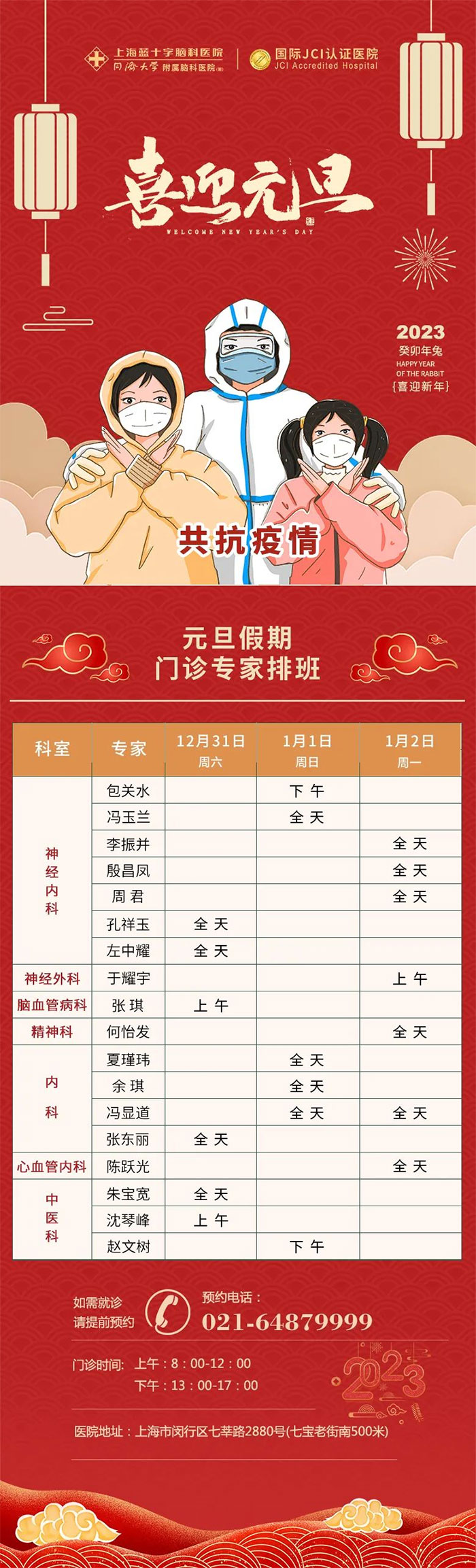 四、因假期就診人數(shù)較多,建議您關(guān)注上海藍(lán)十字腦科醫(yī)院微信公眾號(hào)、或提前撥打預(yù)約電話(021-64879999)預(yù)約,錯(cuò)峰就診。