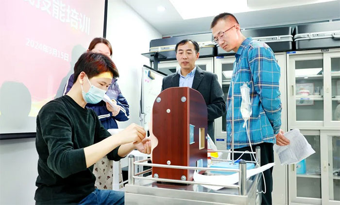 身為醫(yī)者,有自己的大局觀,處處為患者考量;身為講師,有嚴(yán)謹(jǐn)?shù)慕虒W(xué)態(tài)度,對教學(xué)成果負(fù)責(zé)。兩位副主任在授課過程中,以理論講解為主、實(shí)際演練為輔,逐一講解各項(xiàng)技能的要點(diǎn)、重點(diǎn)、難點(diǎn),并讓青年醫(yī)師們一一進(jìn)行實(shí)操演練,讓大家對臨床操作技巧有更透的理解和更深入的掌握。隨后,再一一進(jìn)行高標(biāo)準(zhǔn)的技能考核。干貨滿滿的培訓(xùn),青年醫(yī)師們紛紛表示受益匪淺。
