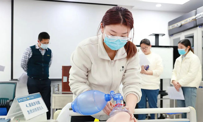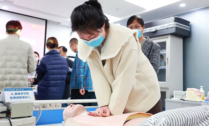 ▲ 醫(yī)保科張雨萌進(jìn)行心肺復(fù)蘇練習(xí)