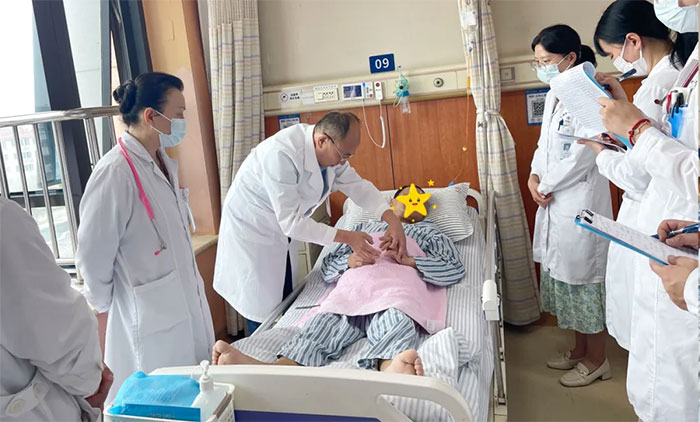 當(dāng)了解到經(jīng)過(guò)治療,患者肢體活動(dòng)不利正在逐步好轉(zhuǎn)后,席教授親自示范,指導(dǎo)管床醫(yī)師進(jìn)行相應(yīng)的體格檢查。“查房醫(yī)生要非常了解自己所管的患者,要掌握患者病史、癥狀體征、實(shí)驗(yàn)室檢查等基本情況。在此基礎(chǔ)上,也要了解患者病情的輕重緩急,還有哪些問(wèn)題沒(méi)解決。”席剛明教授進(jìn)一步指出,查房絕非簡(jiǎn)單的病例匯報(bào),而是一次醫(yī)生間的“思維碰撞”,要提出自己對(duì)治療方案的制定思路,以及目前急需解決的問(wèn)題,在討論中獲得最優(yōu)解。