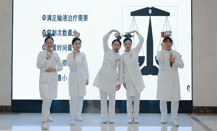 小鋼針擅長(zhǎng)‘閃電戰(zhàn)’;留置針是負(fù)責(zé)“短期陣地戰(zhàn)”的;PICC/CVC是負(fù)責(zé)“中長(zhǎng)期戰(zhàn)役”的;輸液港則是負(fù)責(zé)“持久戰(zhàn)”和“特種作戰(zhàn)”的……選擇何種置管方式,需要根據(jù)患者的治療時(shí)間、藥液性質(zhì)、血管條件、生活需求和經(jīng)濟(jì)情況來(lái)綜合決定。黃朵朵護(hù)士長(zhǎng)帶領(lǐng)著靜療小組成員錢世平、蔡先杰、劉文、張雨晴、裴育,通過精心設(shè)計(jì)的卡通形象和活潑的語(yǔ)言,結(jié)合豐富的圖片、生動(dòng)的視頻及真實(shí)貼切的案例,將專業(yè)性很強(qiáng)的靜療護(hù)理知識(shí),演繹得生動(dòng)形象、惟妙惟肖。