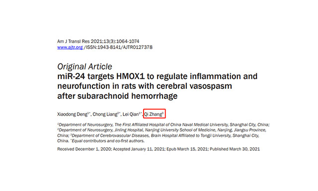 上海藍(lán)十字腦科醫(yī)院科研工作再傳喜報(bào)——醫(yī)院腦血管病科主任張琪博士在專業(yè)學(xué)術(shù)期刊American Journal of Translational Research 《美國轉(zhuǎn)化研究雜志》發(fā)表的《m...[詳情]