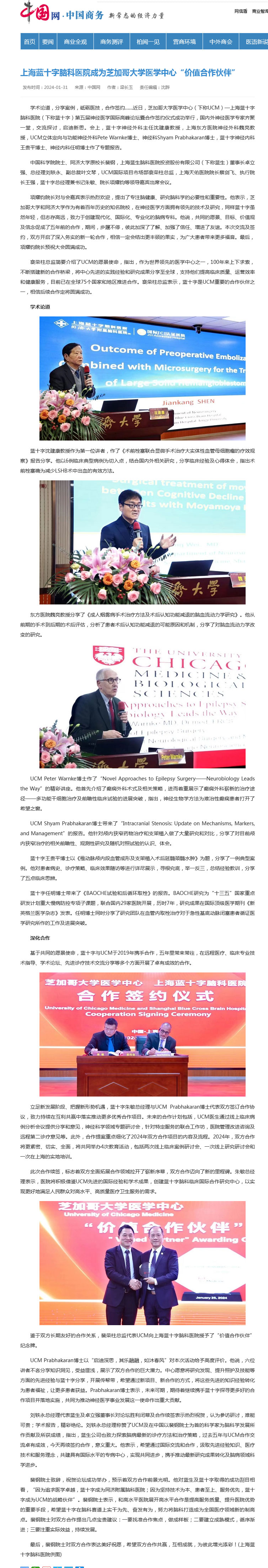 學(xué)術(shù)論道,分享案例,砥礪醫(yī)技,合作簽約……近日,芝加哥大學(xué)醫(yī)學(xué)中心(下稱UCM)—上海藍(lán)十字腦科醫(yī)院(下稱藍(lán)十字)第五屆神經(jīng)醫(yī)學(xué)國(guó)際高峰論壇暨合作簽約儀式成功舉行,國(guó)內(nèi)外神經(jīng)醫(yī)學(xué)專家齊聚一堂,交流探討,啟迪新思。會(huì)上,藍(lán)十字神經(jīng)外科主任沈建康教授,上海東方醫(yī)院神經(jīng)外科魏亮教授,UCM立體定向與功能神經(jīng)外科Pete Warnke博士、神經(jīng)科Shyam Prabhakaran博士,藍(lán)十字神經(jīng)內(nèi)科王貴平博士、神經(jīng)內(nèi)科任明博士作了專題報(bào)告。