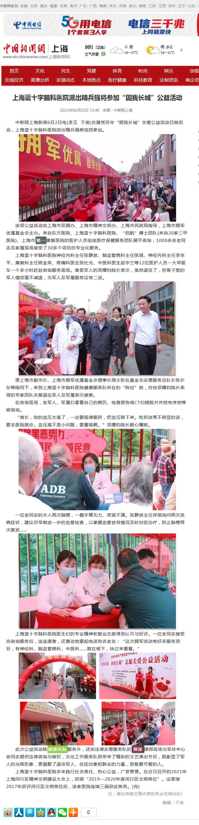中新網(wǎng)上海新聞6月2日電(李玉 于俊)慶建黨百年“固我長城”關(guān)愛公益活動日前啟動,上海藍(lán)十字腦科醫(yī)院派出精兵強(qiáng)將組團(tuán)參加。
