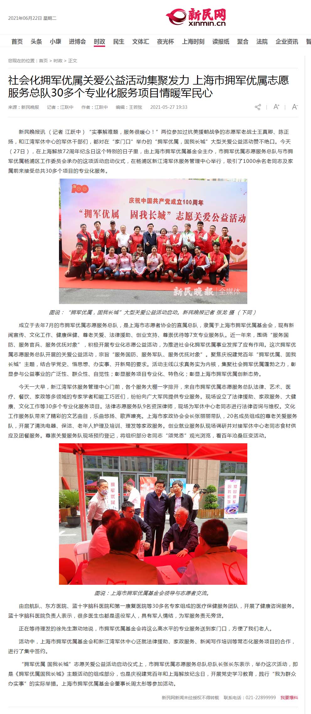 圖說:“擁軍優(yōu)屬,固我長城”大型關(guān)愛公益活動啟動。新民晚報(bào)記者 張龍 攝 (下同)