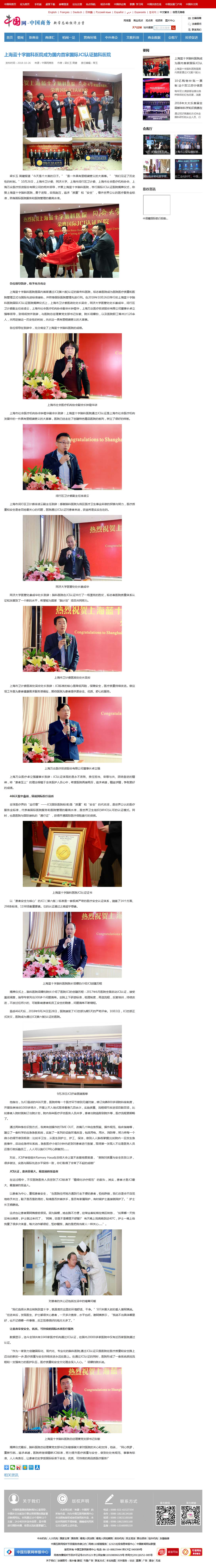 上海藍(lán)十字腦科醫(yī)院JCI認(rèn)證證書