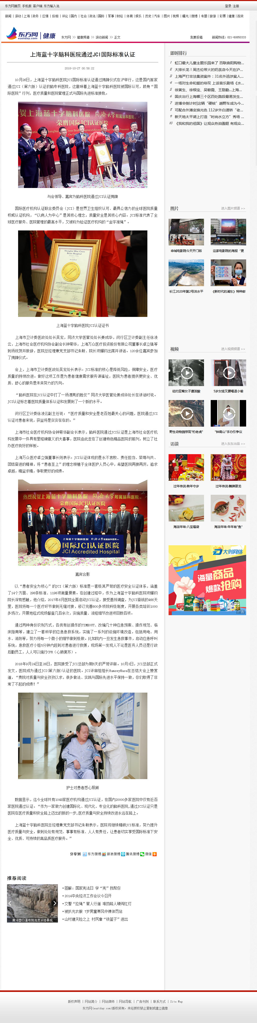10月26日,上海藍十字腦科醫(yī)院JCI國際標準認證通過揭牌儀式在滬舉行,這,這意味著上海藍十字腦科醫(yī)院被國際認可,醫(yī)療質(zhì)量和醫(yī)院管理正式與先進標準接軌。