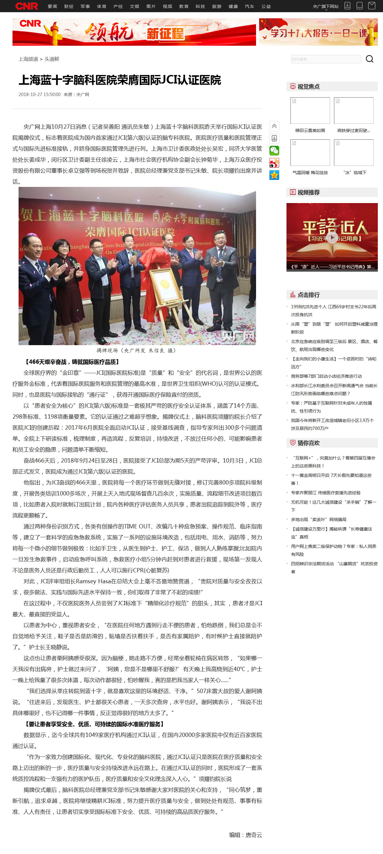 奮戰(zhàn)466天后,2018年9月24日至28日,醫(yī)院接受了JCI總部為期5天的嚴(yán)苛評(píng)審。10月3日,JCI總部正式發(fā)文,醫(yī)院成為通過(guò)JCI(第六版)認(rèn)證的醫(yī)院。
