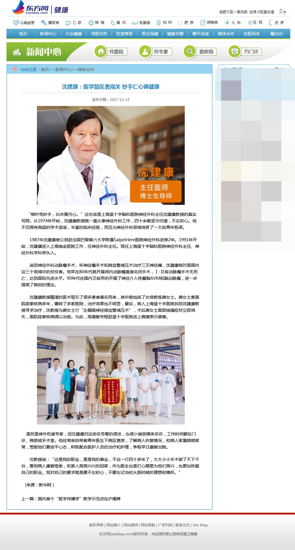 “柳葉憑妙手,白衣秉丹心。”這句話是上海藍十字腦科醫(yī)院神經外科主任沈建康教授的真實寫照。從1974年開始,沈建康教授就一直從事神經外科工作,四十余載堅守問道,不忘初心。他不僅擁有高超的學術造詣,豐富的臨床經驗,而且為神經外科領域培養(yǎng)了一大批青年棟梁。