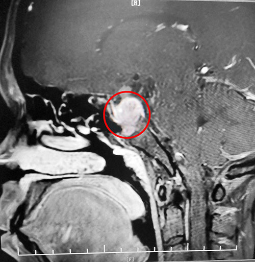▲影像檢查顯示:垂體大腺瘤,超蝶鞍生長