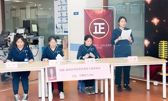 為了更好的提高康復(fù)醫(yī)學(xué)科團(tuán)隊(duì)的綜合素質(zhì),豐富團(tuán)隊(duì)業(yè)余活動(dòng),1月3日下午,上海藍(lán)十字腦科醫(yī)院康復(fù)醫(yī)學(xué)科舉辦以“激辯康復(fù)熱點(diǎn)共創(chuàng)優(yōu)質(zhì)康復(fù)”為主題的辯論大賽。院長(zhǎng)項(xiàng)耀鈞、副院長(zhǎng)郭俊艷、學(xué)科帶頭人程安龍教授、主任姚金榮等共計(jì)50余人參加了此次辯論賽。同時(shí),還特邀同濟(jì)大學(xué)醫(yī)學(xué)院博士生導(dǎo)師牛文鑫教授擔(dān)任本次辯論賽的評(píng)委。