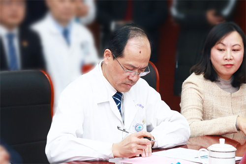 閔行區(qū)衛(wèi)計委主任杭文權(quán)、副主任程佳及相關(guān)科室負責人,我院項耀鈞院長、黨支部書記朱敏、副院長童永祥、潘耀良、周克祥等出席簽約儀式。