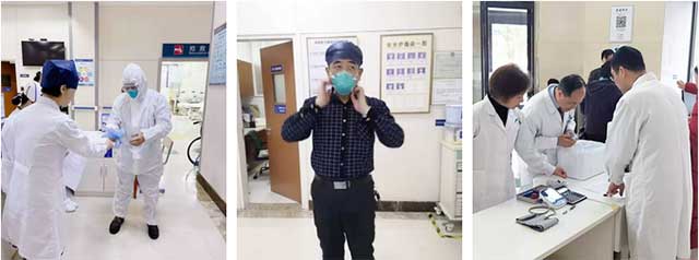 ▲ 左、中圖:佩戴N95口罩,右圖:檢查門診登記情況