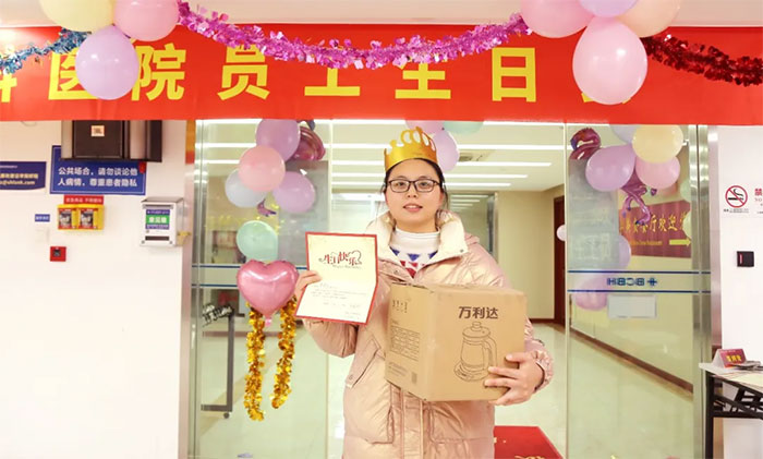 院領(lǐng)導(dǎo)們攜手為壽星們戴上壽星帽,同慶同樂——“祝大家生日快樂,前程美好!”醫(yī)院總經(jīng)理兼黨支部書記朱敏、院長項耀鈞為壽星們送上誠摯祝福。副總經(jīng)理兼工會主席吳春芳代表工會為壽星們奉上了精美的生日蛋糕,并親自為壽星們做好服務(wù)工作。