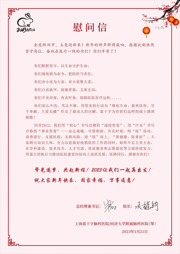 值此新春之際,上海藍(lán)十字腦科醫(yī)院向全院干部職工和社會(huì)各界致以...【詳細(xì)】