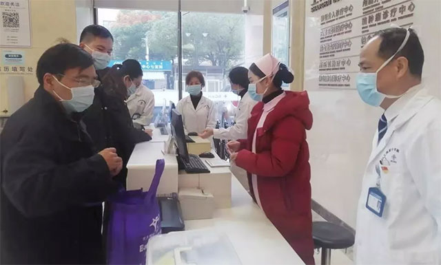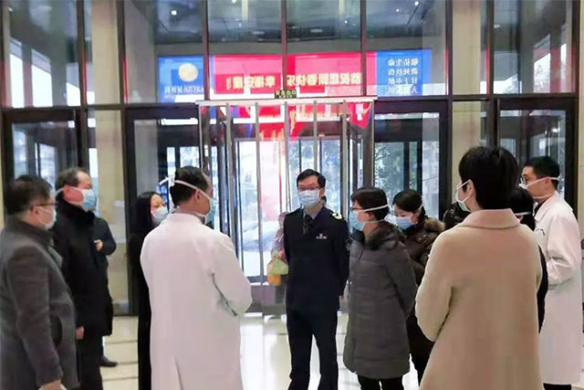 ▲ 醫(yī)院領導現(xiàn)場檢查防控工作
