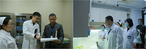 ▲潘耀良副院長帶領(lǐng)各科室負(fù)責(zé)人對醫(yī)院大樓各樓層進(jìn)行安全大檢查