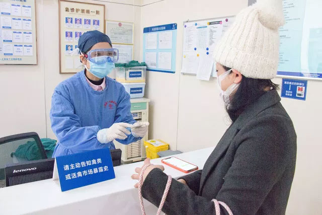 1月22日到2月4日抗戰(zhàn)疫情期間,為守好醫(yī)院疫情防控的首要關(guān)口,門診護(hù)理組組長(zhǎng)高燕、客服部副主任姜文鳳堅(jiān)守崗位,兢兢業(yè)業(yè)。她們每天穿上防護(hù)服,戴著口罩、護(hù)目鏡,給每位來院患者和家屬測(cè)量體溫,不厭其煩地詢問是否到過疫區(qū),有沒有外出(湖北武漢)歸來史、禽類接觸史、病例接觸史、有無發(fā)熱等癥狀進(jìn)行流調(diào),對(duì)發(fā)熱的患者、呼吸道疾病患者,耐心勸導(dǎo)其去閔行區(qū)發(fā)熱門診定點(diǎn)醫(yī)院就診。