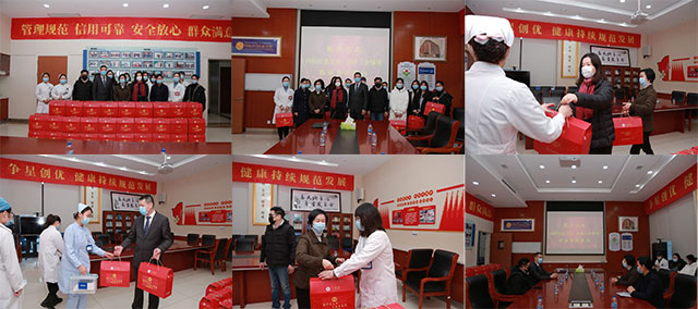 禮包發(fā)放現(xiàn)場,其樂融融,洋溢著喜迎新春的歡快氣氛。醫(yī)院領導現(xiàn)場一邊送上大禮包,一邊傳遞祝福:
