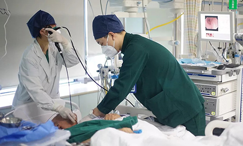 在大年初四的凌晨,送來(lái)一個(gè)因胃失血性休克的危重病人,院值班的高衛(wèi)星主任也陪同一起搶救,一直忙碌到早上6:00,終于使這位病人轉(zhuǎn)危為安。
