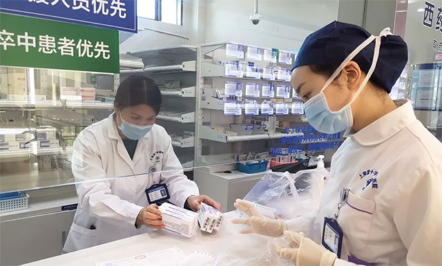 在這場防控疫情阻擊戰(zhàn)期間,在上海藍(lán)十字腦科醫(yī)院,都能看到門、急診和客服部的工作人員穿梭于專家診室、收費室、藥房,為來院的居民代配藥。