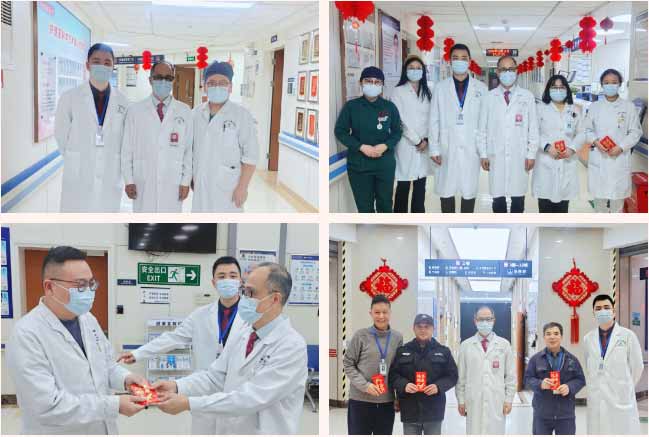 2月16日農(nóng)歷除夕,院長項耀鈞、副總經(jīng)理吳啟航等院領(lǐng)導(dǎo),攜行政總值班、護(hù)理總值班一行,深入臨床一線、醫(yī)技科室及后勤保障等部門,走到每一個仍在崗位上忙碌的身影身邊送上誠摯的節(jié)日問候。