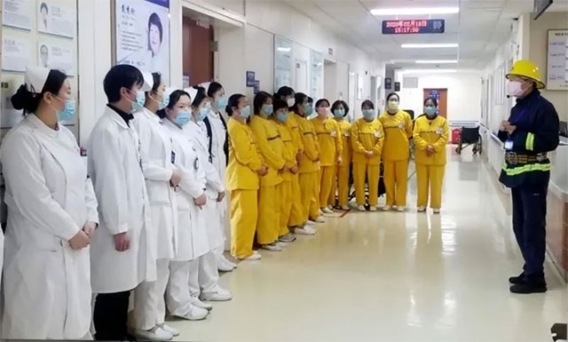 ▲ 防疫期間,在醫(yī)院神經(jīng)內(nèi)科3B病區(qū)對醫(yī)護人員進行消防設(shè)施設(shè)備培訓