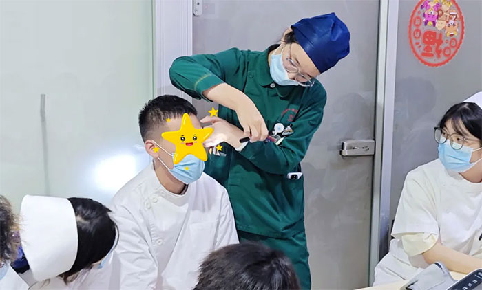 一束光穿透瞳孔,點亮新芽初萌的求知目光。護士長將瞳孔筆化作傳承的教鞭,在方寸之間傳遞醫(yī)者匠心,用專業(yè)炬火引航護理新生代,詮釋巾幗擔當?shù)膫鞒辛α俊?/p>