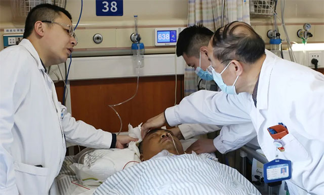 救援隊隊長沈方德連忙聯(lián)系到在上海藍十字腦科醫(yī)院神經(jīng)外科6B病區(qū)潘仁龍主任,潘主任在問明情況后,給予主治醫(yī)生連線指導。九天來,潘主任每天電話詢問那位隊員狀況,覺得病人病情危重,遂于12月11日動身坐車趕往寧波去會診。