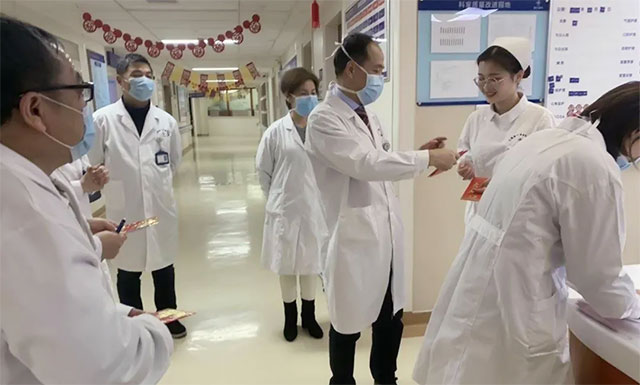 感動的事件太多了。比如,項耀鈞院長退掉了買好的機票,退掉了定好的賓館,放棄了陪家人出國旅游的機會,每天泡在醫(yī)院里,以醫(yī)院為家,春節(jié)期間每天大交班,部署疫情防控工作,深入疫情防控一線檢查、指導工作;年夜飯陪員工在醫(yī)院吃盒飯,到病區(qū)慰問員工,檢查醫(yī)院在崗務人員體溫檢測和住院患者體溫異常追蹤,答疑解惑,排查防控漏洞,日復一日,就沒停下來過。