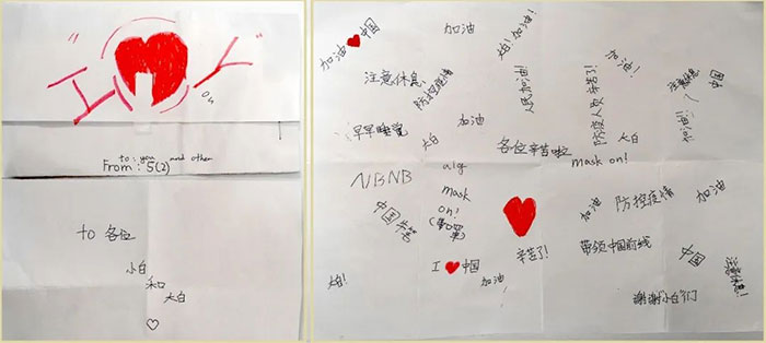 還記得3月11日那天,萬(wàn)科雙語(yǔ)學(xué)校的采樣小分隊(duì),收到了六年級(jí)3班的小朋友們親手制作的“特殊禮物”。一件不一樣的防護(hù)服,上面用水筆,密密麻麻地寫(xiě)滿了祝福詞。“謝謝你們,辛苦了!愛(ài)你們!”、“你們是最美的!”、“感謝你們舍身為人的幫助!”、“愿疫情早日過(guò)去!”……他們用這種方式,抒發(fā)著對(duì)于抗疫的情感與理解,表達(dá)他們對(duì)醫(yī)護(hù)人員的感激和支持。小小的心靈,以獨(dú)特的視角,審視著這個(gè)世界。在他們眼中,“大白”們無(wú)所不能,無(wú)所不會(huì)。他們就是這個(gè)世界的英雄!