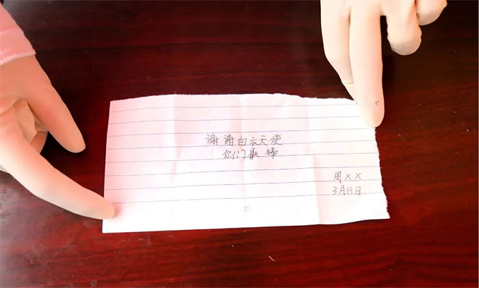 ▲ 寫(xiě)滿祝福語(yǔ)的防護(hù)服