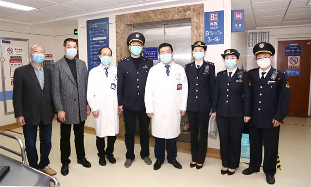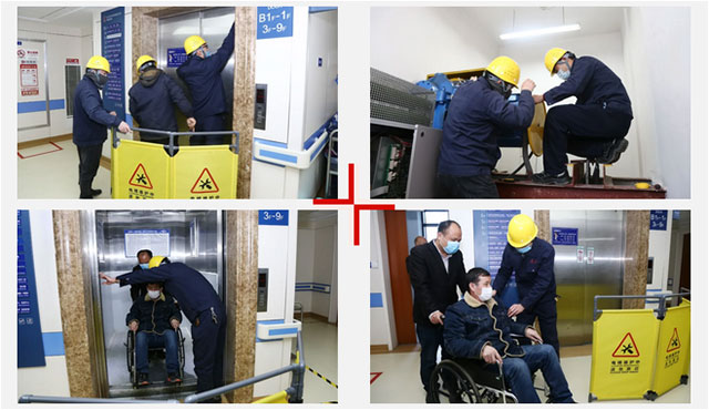 緊接著,維修人員打開電梯門,引導(dǎo)“病人和家屬”走出電梯,同時問候人員情況。