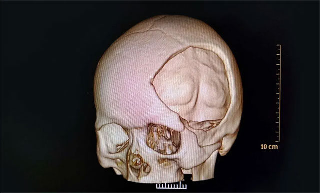 ▲ 來院時,患者顱骨大塊缺損