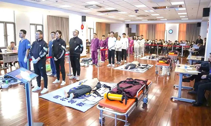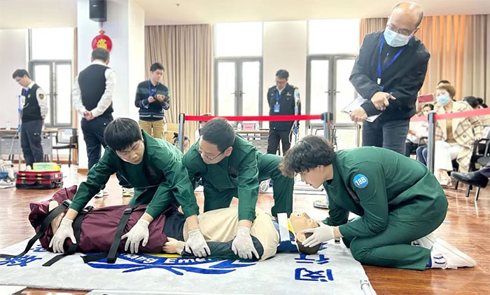 賽前,由總裁判長陸峰副主任介紹本次競(jìng)賽規(guī)則,競(jìng)賽設(shè)立“心臟驟停心肺復(fù)蘇模具操作(三人)”和“高處墜落骨折傷病員急救操作(三人)”兩個(gè)項(xiàng)目,競(jìng)賽采用百分制計(jì)分法評(píng)選獲獎(jiǎng)隊(duì)伍。