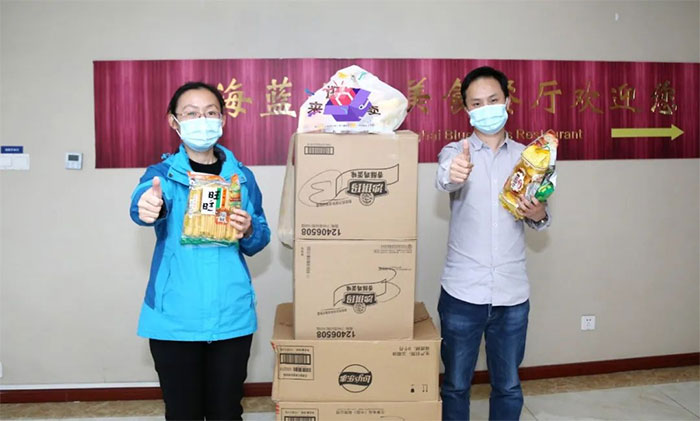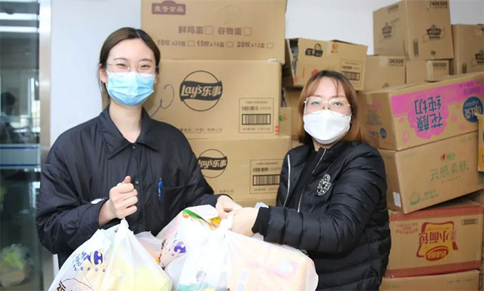 咖啡、潤喉糖、八寶粥、仙貝、話梅......滿含心意的禮物,傳遞著心的溫暖。員工們紛紛表示,拎著的是愛、是暖、是抗疫必勝的信念和決心。