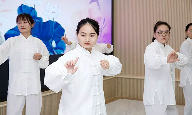 ▲ 中醫(yī)科醫(yī)務(wù)人員表演八段錦養(yǎng)生功+太極