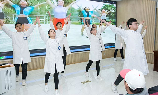 ▲ 康復(fù)科醫(yī)務(wù)人員表演康復(fù)操