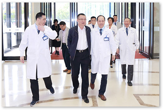 4月26日上午,閔行區(qū)衛(wèi)計委主任杭文權、副主任程佳一行蒞臨上海藍十字腦科醫(yī)院考察調(diào)研。我院院長項耀鈞、黨支部書記朱敏、副院長童永祥、潘耀良、周克祥等陪同考察,對杭文權主任、程佳副主任的調(diào)研指導表示誠摯熱烈的歡迎。院領導陪同兩位主任一行,參觀、考察了就醫(yī)環(huán)境,并就近年來開展的專業(yè)化服務進行了介紹,雙方對今后的醫(yī)院發(fā)展戰(zhàn)略也進行了深入討論與交流。